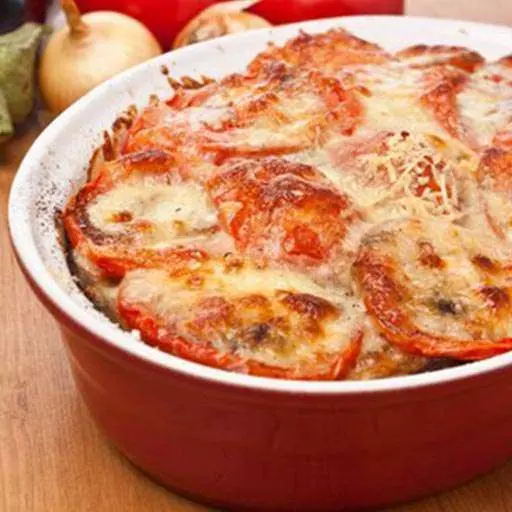 4. Сметану смешать с горчицей, добавить тертый сыр. Смесью залить помидоры и поставить сковороду в духовку на 15—20 минут.