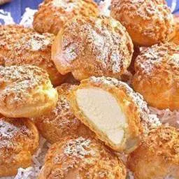 2. Для тестування. Яйця розбити в миску, зважити, збити вилочкою. У сотейник налити воду, покласти олію, додати дрібку солі. Довести до кипіння, всипати відразу все борошно, і інтенсивно перемішувати лопаткою. Заважаємо, не знімаючи з вогню, борошно повинне заваритися. Заважаємо на вогні ще 2-3 хвилини, на дні сотейника має утворитися скоринка, а тісто зібратися в грудку. Гаряче тісто перекладаємо в кухонну машину, насадка лопатка і починаємо збивати, поступово додаючи по 1-2 ст.л. яйця. Готове тісто має стікати із лопатки «конусом». Відсадити на лист з папером для запікання, притиснути хвостики пальцем ледве змоченим водою, покласти зверху заморожений кухоль тіста для кракеліну і відправити в нагріту духовку до 220 гр., режим «низ-верх». Випікати при 220 гр. 10 хвилин, потім зменшити до 180 гр і пекти ще 25-30 хвилин. Остиглі профітролі начинити кремом.
