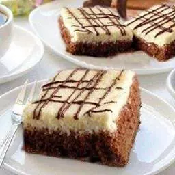 5. Дно форми (в даному випадку 14х14) вистелити пергаментом. Залити сирну масу. Зверху рівномірним шаром викласти шоколадне тісто. Випікати в розігрітій духовці за температури 180 градусів протягом 15-20 хв.