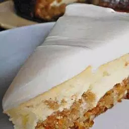 4. Spread 1 1/2 cups carrot cake batter over bottom of prepared pan. Drop large spoonfuls of cream cheese batter over carrot cake batter. Top with large spoons full of remaining carrot cake batter. Repeat with remaining cream cheese batter, spreading evenly with a knife.