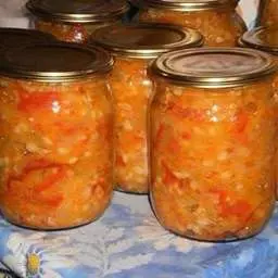 1. Перець і цибулю нарізати кільцями, моркву натерти на тертці. Варити, додати олію, сіль, цукор, і варити протягом 15 хвилин.
