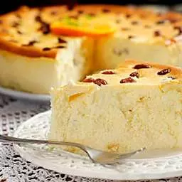 1. Творог растереть с сахаром. Добавить яйца, растопленное масло,сметану, манку, разрыхлитель, ванилин - размешать.
