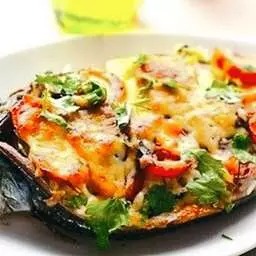 Скумбрия, фаршированная рисом и овощами