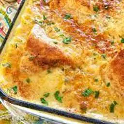 4. In a large bowl combine chicken, soups, spices, pepper, water, milk and instant rice.