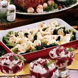 1. Arrange broccoli and artichokes in a greased shallow 2-1/2 qt. baking dish; set aside.