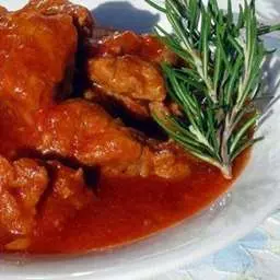 2. Крупную луковицу нарезаем полукольцами, перец - полосками. Тушим в небольшом количестве воды, минут 10 до мягкости. Добавляем мелко нарубленный чеснок, острый перчик, соль и корицу, томаты вместе с соком, разминаем их ложкой. Тушим 5 минут.
