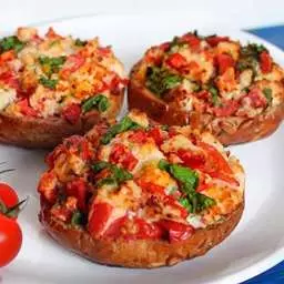 4. Выложить на хлеб смесь из сыра и помидоров.
