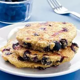 1. Измельчите хлопья в блендере, добавьте растертый творог, кефир и яйца. Аккуратно вмешайте в тесто ягоды и оставьте на 15 минут.