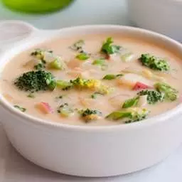 3. Добавляем сливки и бульон в кастрюлю. На тёрке трём 150 г. сыра и добавляем его в суп. На слабом огне варим ещё 15 мин.