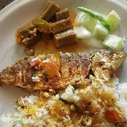 4. Close the lid and cook till 4 whistles, off the fire wait for the steam release, open the lid, take a nonstick pan transfer all the masala to the pan, add the fish and cover the pan. Then cook till done, then add rice over the masala and simmer the biriyani till set and done.