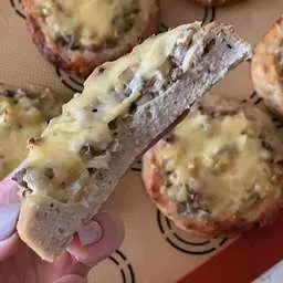 4. Выпекать в разогретой до 200 градусов духовке 15-20 минут, затем достать, выложить в серединки по 1,5 столовой ложки начинки и снова убрать в духовку на 10-15 минут до румяности. В самом конце посыпать каждую ватрушку тертым сыром и оставить в духовке еще на 5-7 минут.