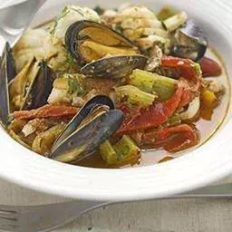 1. Leave this stew to infuse for longer. Whizz the parsley stalks, half the leaves, oil and seasoning in a food processor. Add this to the onions, celery, paprika, peppers and tomatoes in the slow cooker pot. Cook on Low for 8-10 hours. Nestle the mussels in the sauce and scatter the fish on top. Re-cover and cook on High for 30 mins-1 hour. Discard any unopened mussels, stir the fish into the sauce then serve.