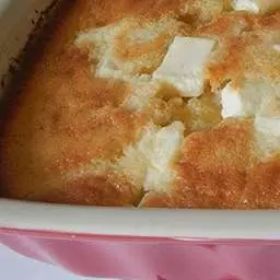 4. Add the Pineapple chunks, arranging in a single layer as much as possible. Drop cream cheese pieces over pineapple chunks. Place in preheated oven and bake for 45 minutes or until top is golden brown and edges are bubbling. The crust rises up and around the fruit, but fruit will still pop a little out of top.