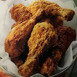 2. Preheat oven to 425 degrees. In another plastic bag mix flour, paprika, baking powder, salt and pepper. Remove chicken from marinade and add, one piece at a time to the flour mixture, close bag and shake to coat.