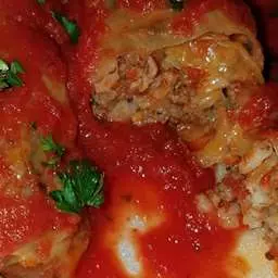 5. Now get the cabbage and gently remove the cabbage leaves and fill each cabbage leaf with your meat mixture, don't over fill or it will be hard to roll. Place them in your baking pan and cover with your sauce, bake for 45 - 50 minutes cover. The last 10 minutes of bake time remove the cover and finish baking. Remove from the oven and enjoy.