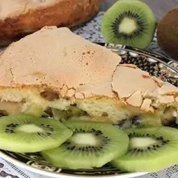 3. Форму змащуємо вершковим маслом (форму діаметром 28 см). Змішуємо порізані ківі та яблука. Укладаємо начинку на дно форми рівним шаром.