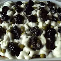 3. Верх прикрасити сіточкою з майонезу та чорносливом.