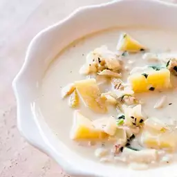 5. Blend in flour, salt; gradually stir in milk. Cook over med heat. Stir constantly until soup comes to a boil. Add fish and vegetable mixture. Serve hot. Garnish with chopped parsley.