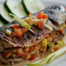 7. Выдавить лимонный сок поверх рыбы, а также смазать соком рыбу внутри. Посолите (можно и без соли) и посыпьте приправами по вкусу.