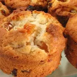 2. Выкладываем тесто в формочки. Добавляем изюм (предварительно промытый). Ставим выпекаться на 15-20 мин при 160 °С. Остудить.