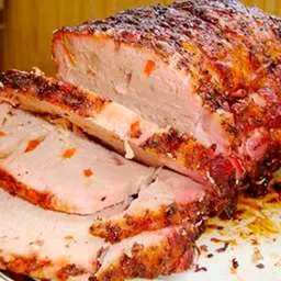 2. Мясо поместить в глубокий контейнер, добавить все ингредиенты для маринада, залить водой, закрыть крышкой и поставить в холодильник минимум на 6 часов. После мясо обтереть бумажными салфетками, с помощью шпагата стянуть мясо в форме рулета. Смешать все ингредиенты для «обмазки» и нанести на мясо со всех сторон.