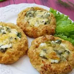 5. Творог перемешать с зеленью, выложить в куриные корзинки, сверху посыпать сыром и еще на 10 минут в духовку.