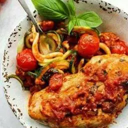 6. Add the chicken back to the skillet along with the zoodles to soak in the sauce a few minutes before serving.